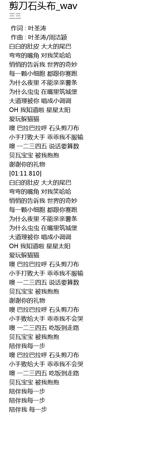 | [02:11.743] | 噢 巴拉巴拉呼 石头剪刀布 |