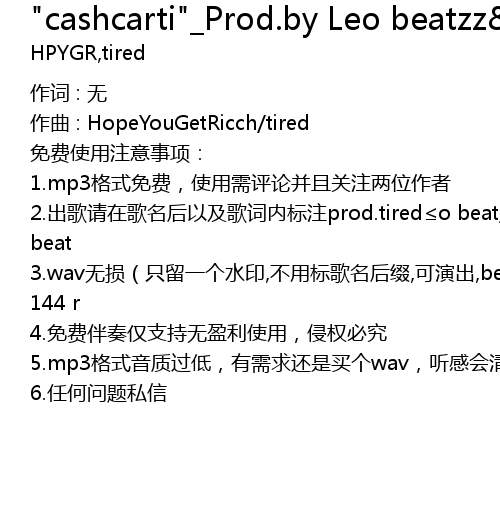 | 2.出歌请在歌名后以及歌词内标注prod.tired≤o beat/编曲:tired≤o beat | |