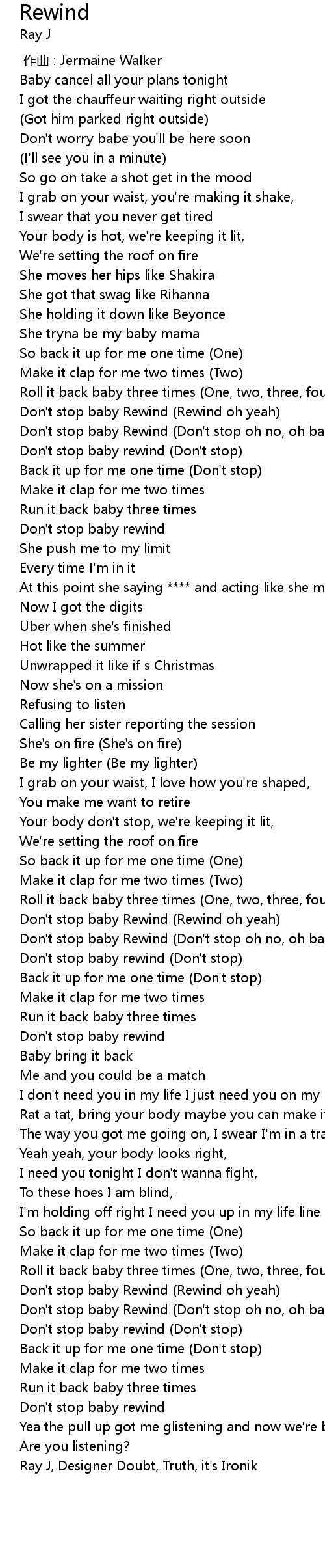 | [02:43.39] | Don't stop baby Rewind (Rewind oh yeah) |