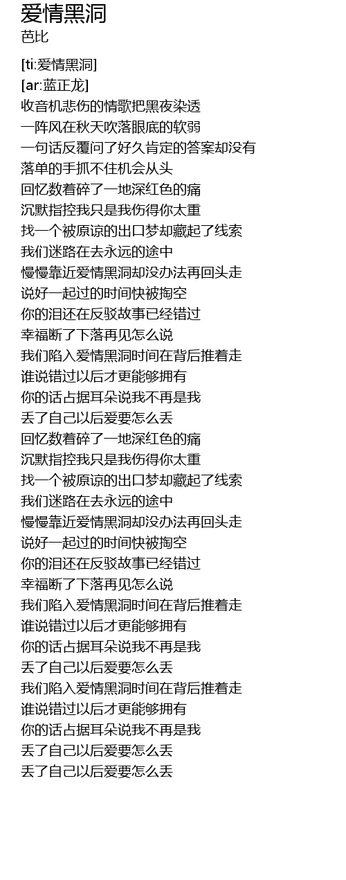 | [03:47.732] | 我们陷入爱情黑洞时间在背后推着走 |