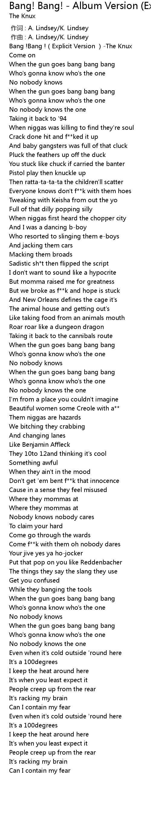 | [00:00.00] | Bang ! Bang ! Explicit Version The Knux |