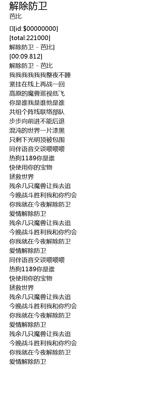 | [03:06.336] | 你我就在今夜解除防卫 |