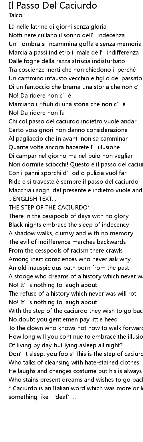 | Non dormite sciocchi! Questo e il passo del caciurdo | |