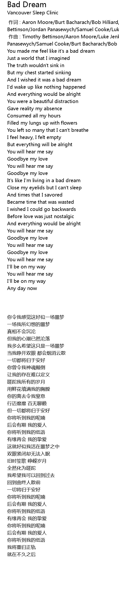 | [00:00.00] | 作词 : Aaron Moore/Burt Bacharach/Bob Hilliard/Timothy Bettinson/Jordan Panasewych/Samuel Cooke/Luke Jenkins |