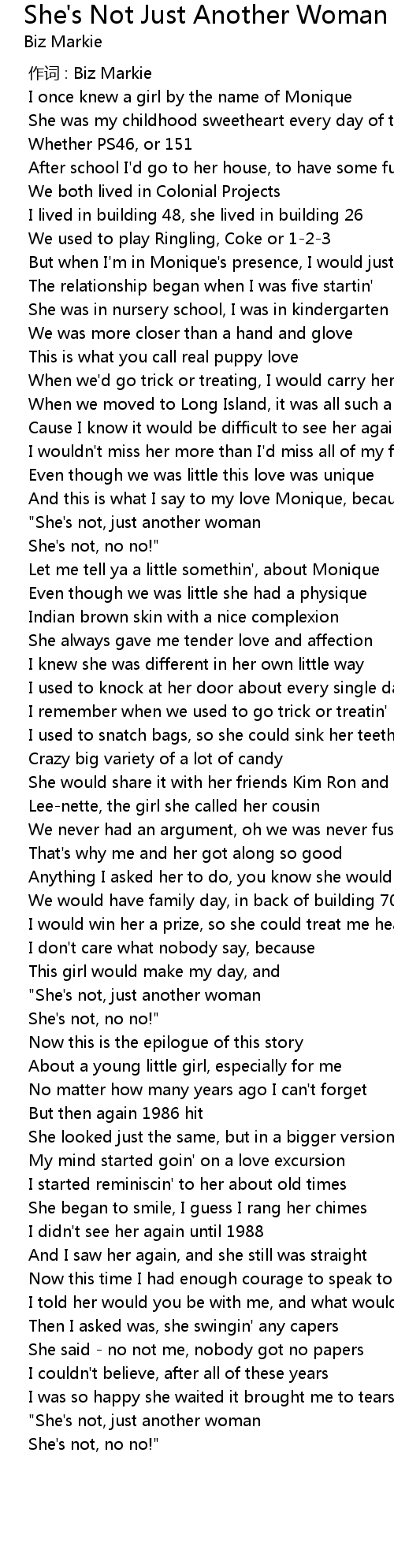 | [01:30.158] | Let me tell ya a little somethin', about Monique |