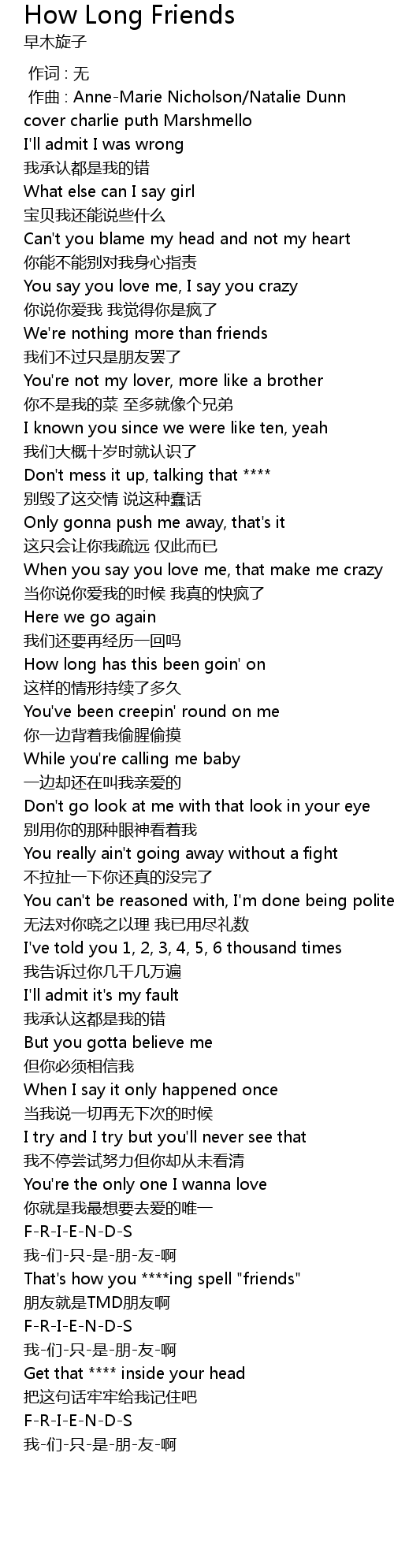| Song | How Long Friends |
