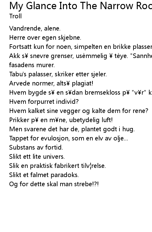 | Song | My Glance Into The Narrow Room |