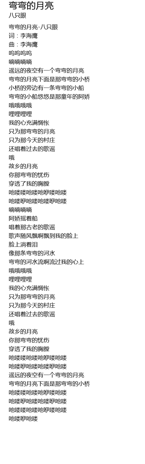 | [00:00.00] | 弯弯的月亮-八只眼 |