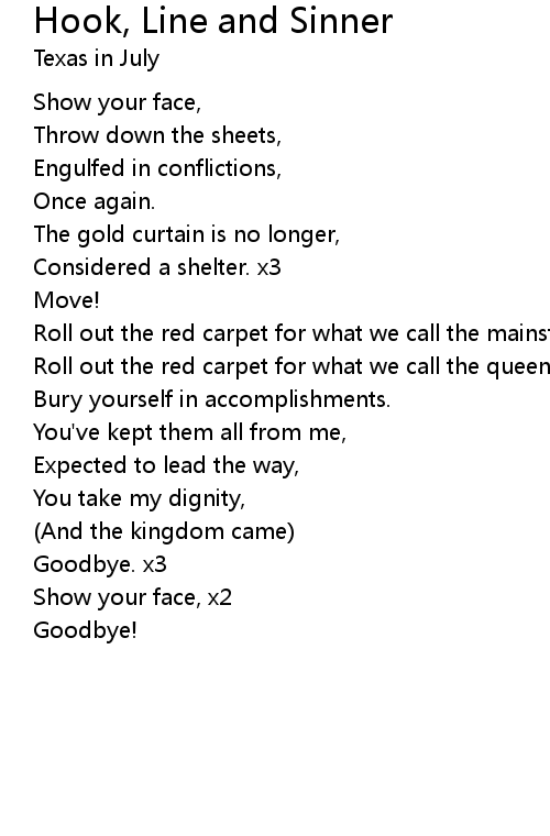 | Song | Hook, Line and Sinner |
