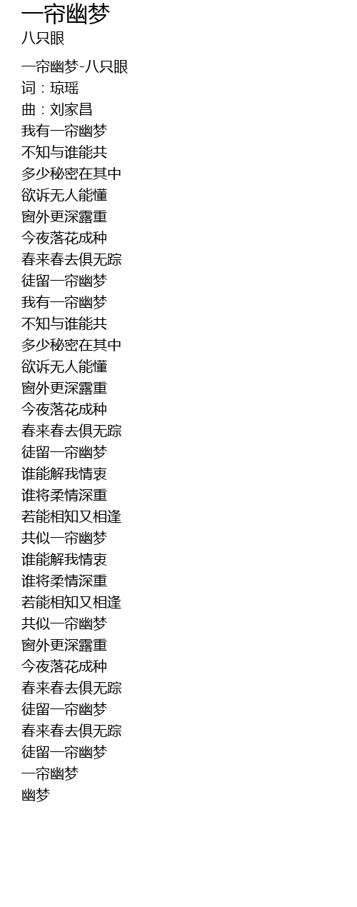 | [00:00.581] | 一帘幽梦-八只眼 |