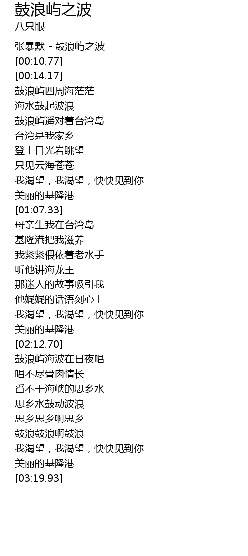| [00:09.08] | 张暴默 - 鼓浪屿之波 |