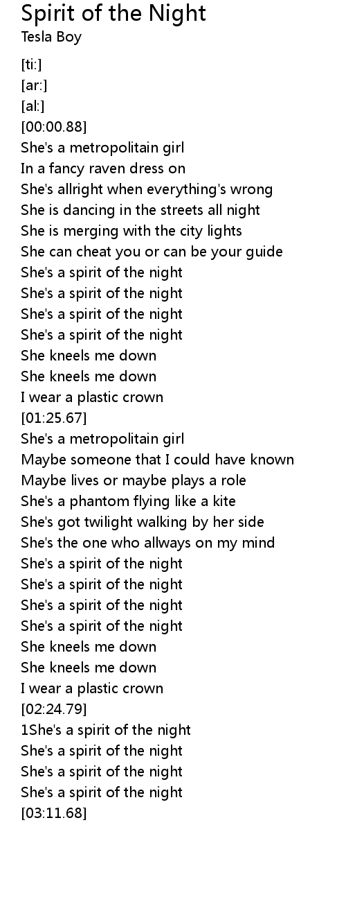 1She's a spirit of the night |