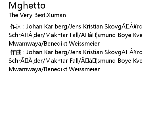 | [00:00.000] | 作词 : Johan Karlberg/Jens Kristian SkovgÃÂ¥rd Schrøder/Makhtar Fall/Ãâ¦smund Boye Kverneland/Esau Mwamwaya/Benedikt Weissmeier |