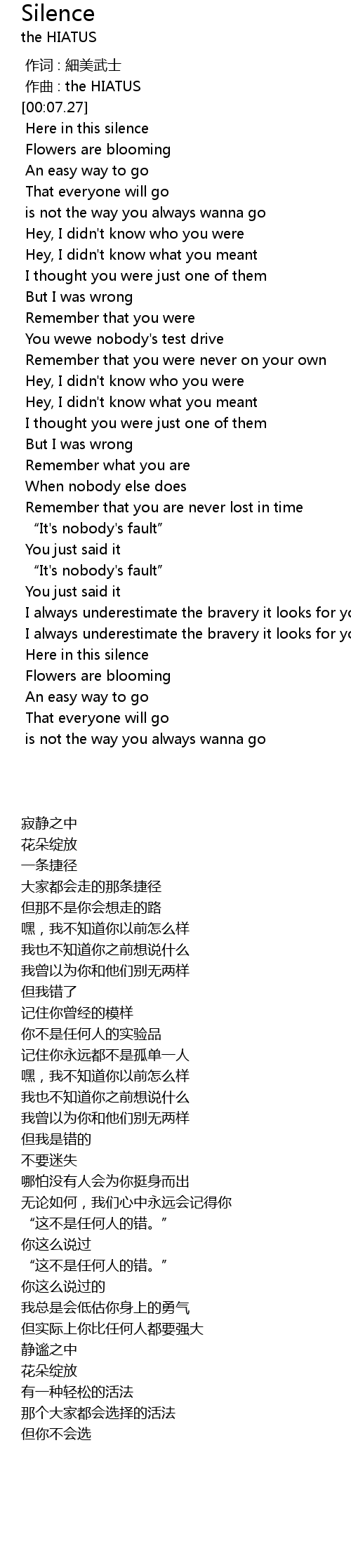 | [00:22.43] | Here in this silence |