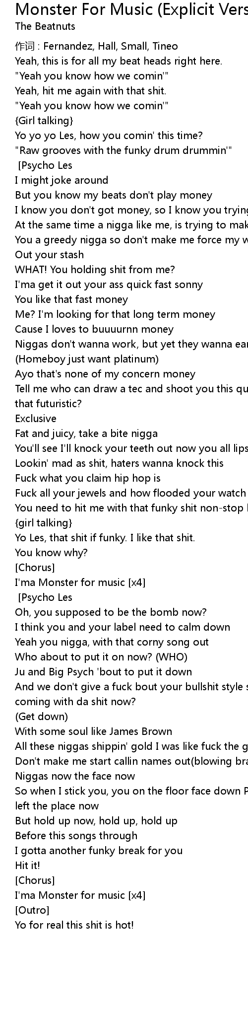 | Song | Monster For Music (Explicit Version) - Explicit Version |