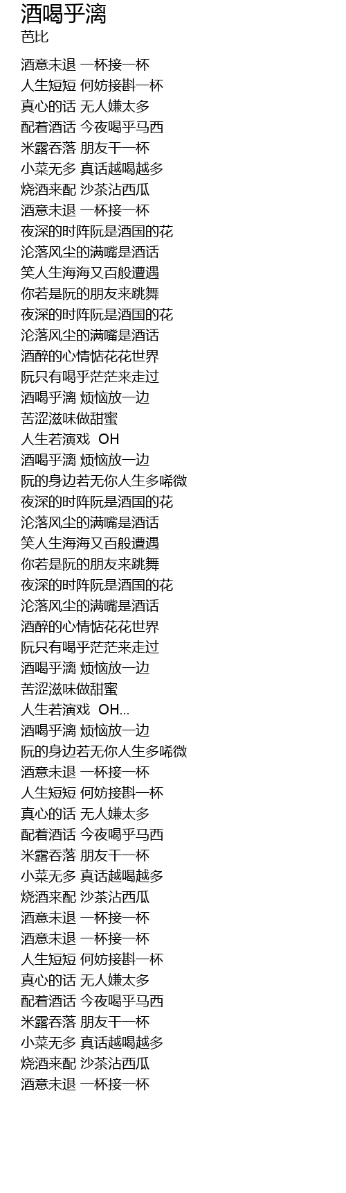 | [00:20.360] | 米露吞落 朋友干一杯 |