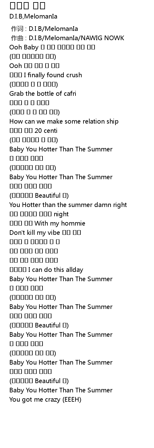 | [01:08.804] | Baby You Hotter Than The Summer |