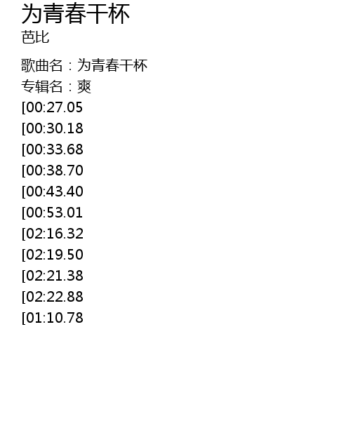 | [00:00.00] | 歌曲名:为青春干杯 |