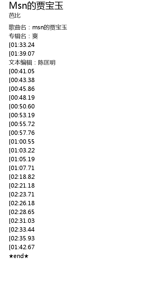 | [00:00.00] | 歌曲名:msn的贾宝玉 |