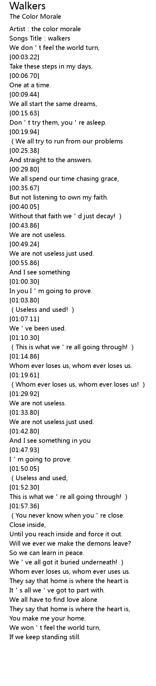 | [00:01.10] | Songs Title: walkers |