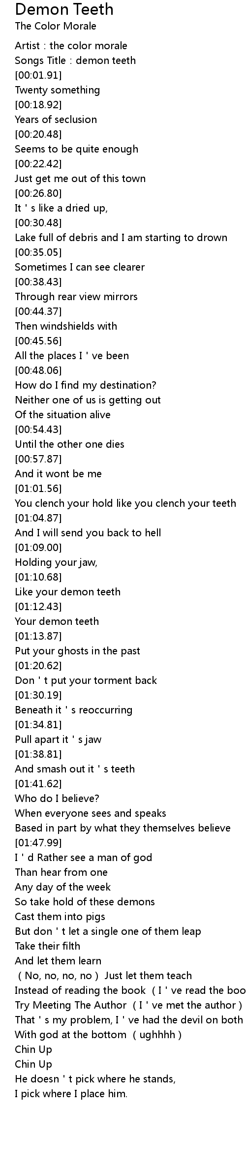 | [00:01.16] | Songs Title:demon teeth |