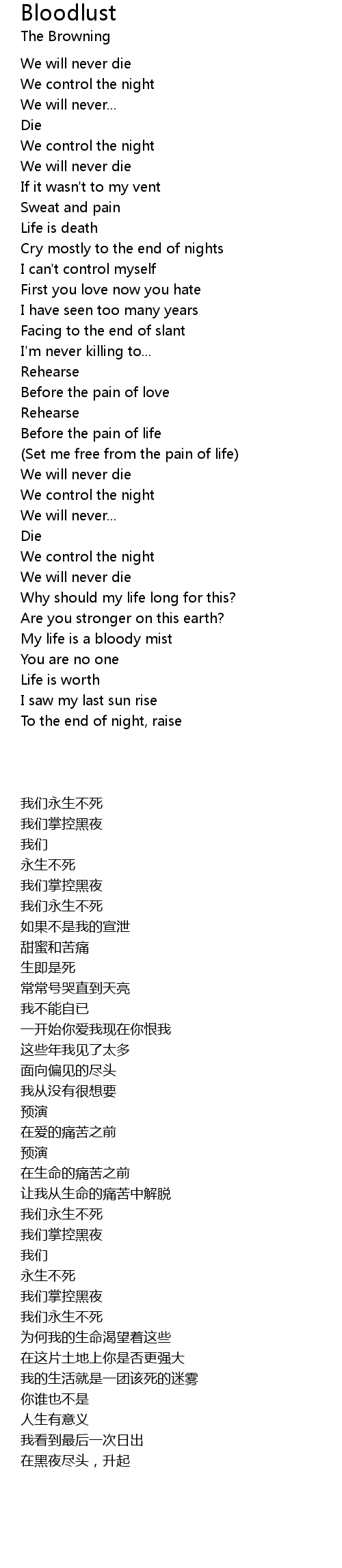 Cry mostly to the end of nights |