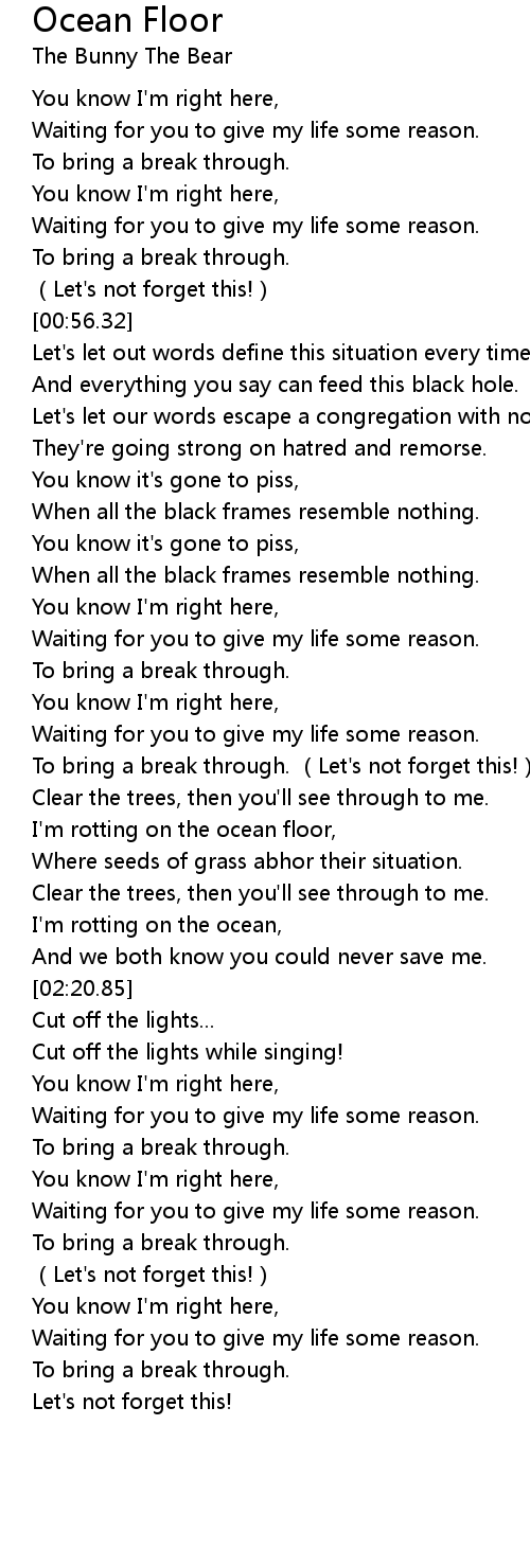 | [02:01.10] | I'm rotting on the ocean floor, |