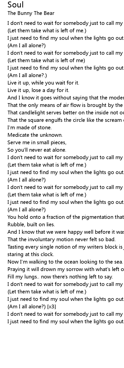 I just need to find my soul when the lights go out. |