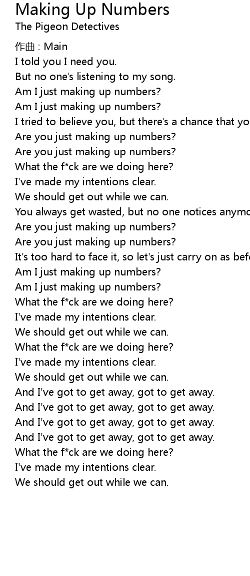 | Song | Making Up Numbers |
