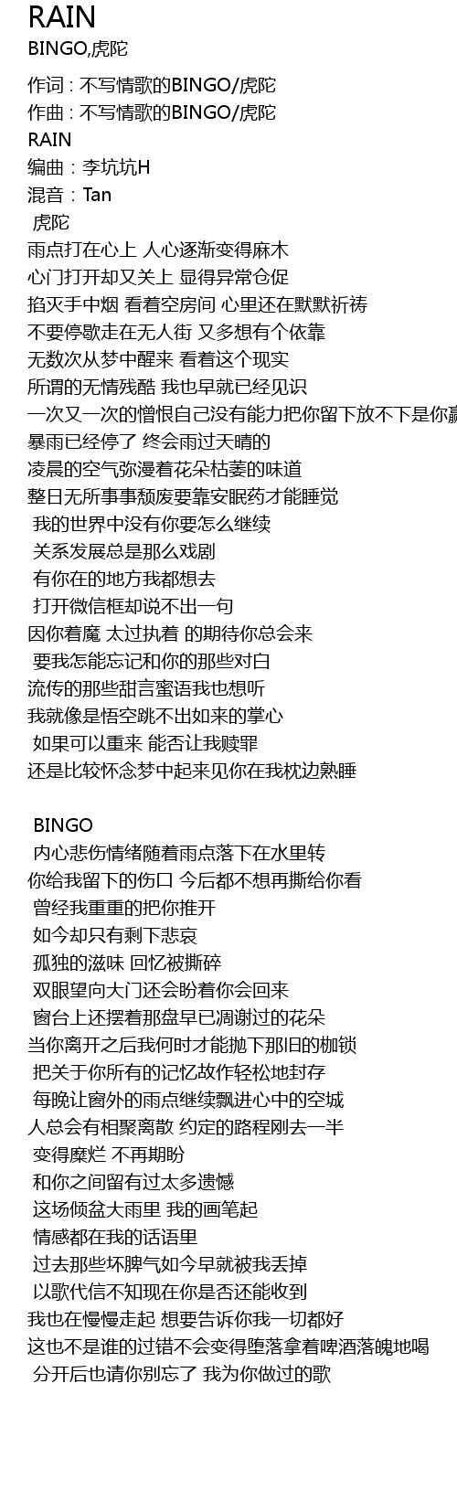 | 作曲 : 不写情歌的BINGO/虎陀 | |