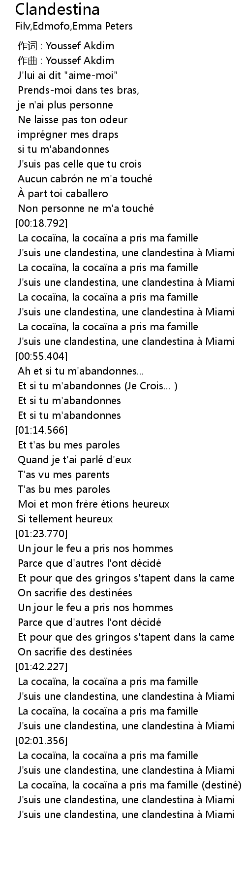 | [01:48.713] | J' suis une clandestina, une clandestina à Miami |