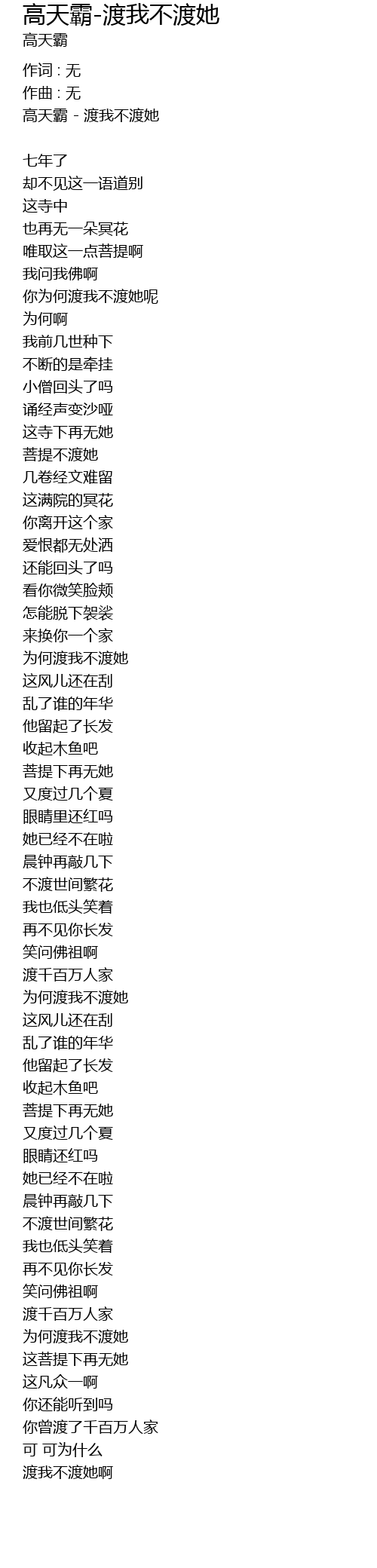 | 高天霸 - 渡我不渡她 | |