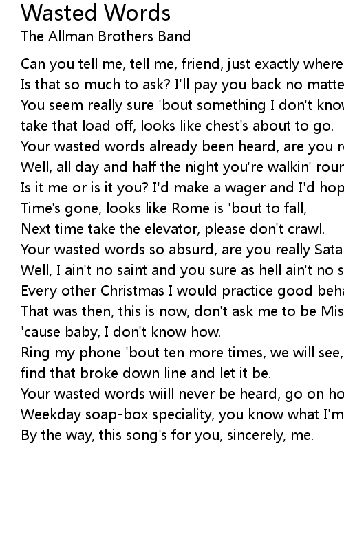 Wasted Words Lyrics