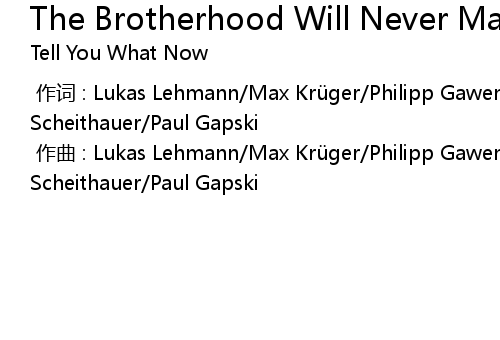 | [00:00.00-1] | 作词 : Lukas Lehmann/Max Krüger/Philipp Gawenda/Florian Scheithauer/Paul Gapski |