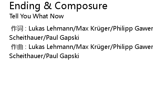 | [00:00.00-1] | 作曲 : Lukas Lehmann/Max Krüger/Philipp Gawenda/Florian Scheithauer/Paul Gapski |
