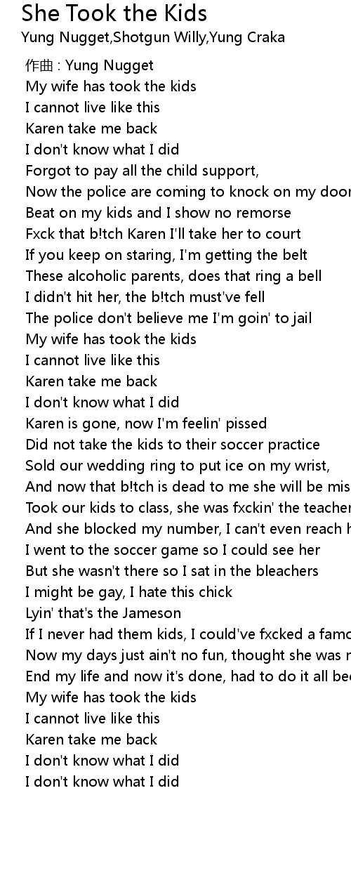 | [00:47.368] | My wife has took the kids |