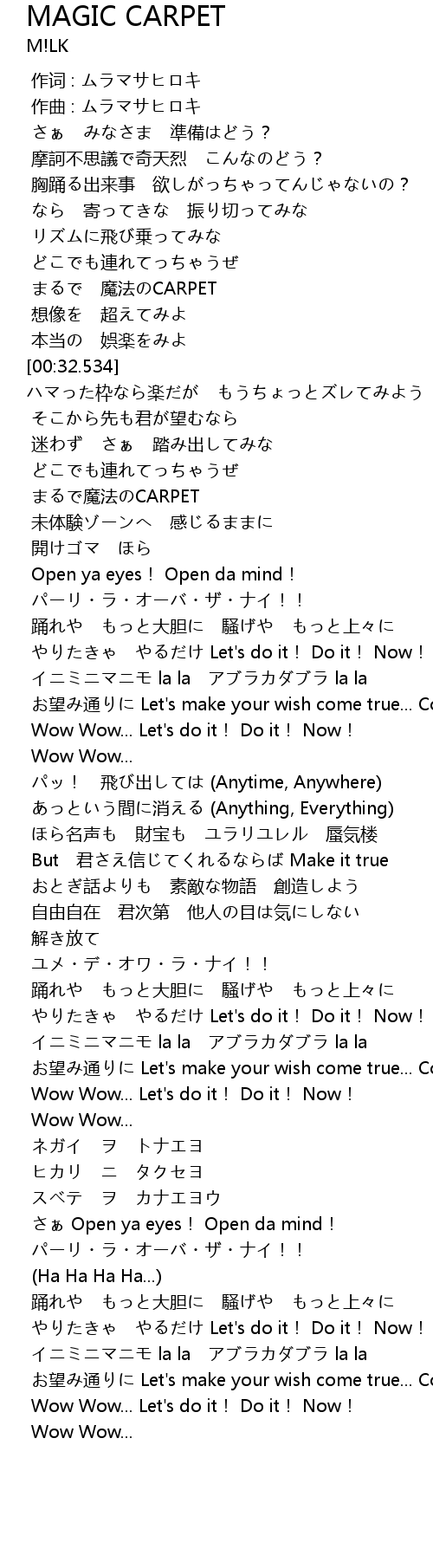 | [01:07.417] | イニミニマニモ la la アブラカダブラ la la |