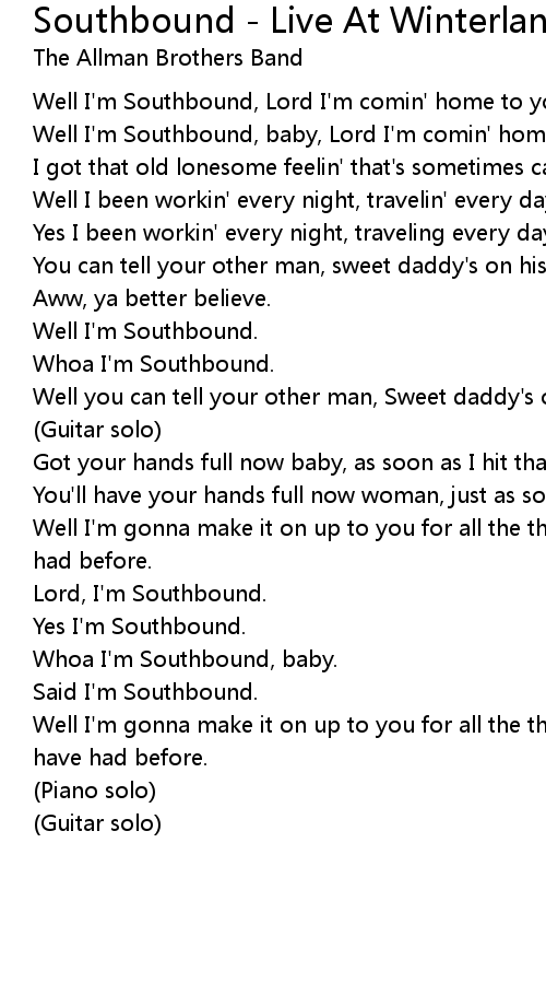 Southbound - Live At Winterland/1973 Lyrics