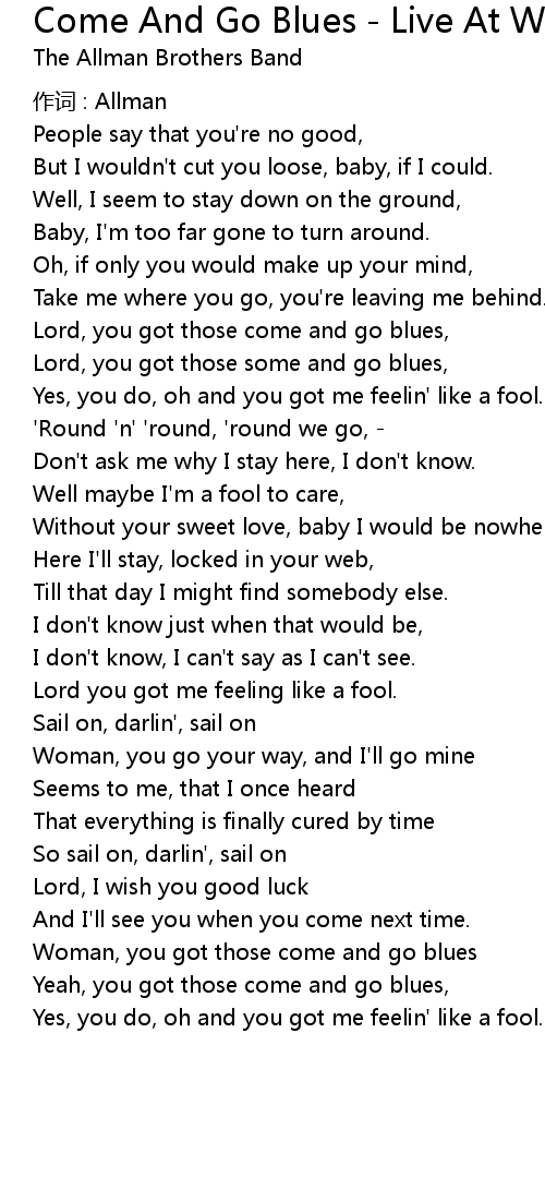 | Song | Come And Go Blues - Live At Watkins Glen/1973 |