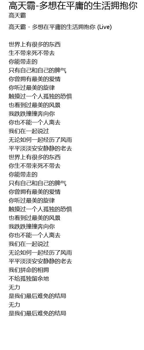 | 高天霸 - 多想在平庸的生活拥抱你 (Live) | |