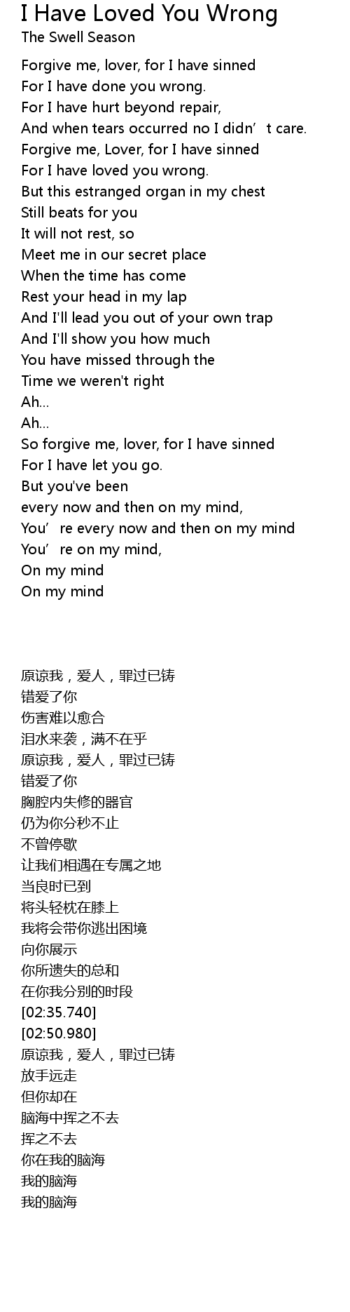 | [00:45.680] | Forgive me, Lover, for I have sinned |