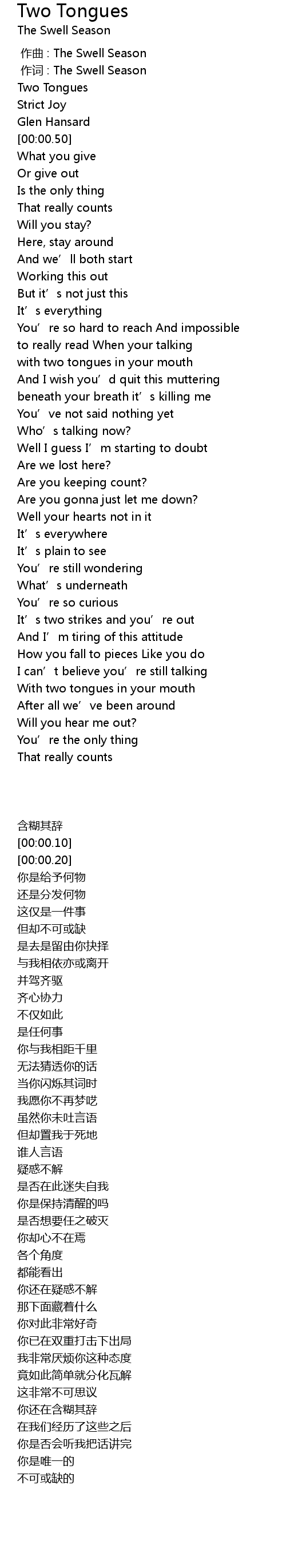 | [00:00.00] | zuò qǔ : The Swell Season |