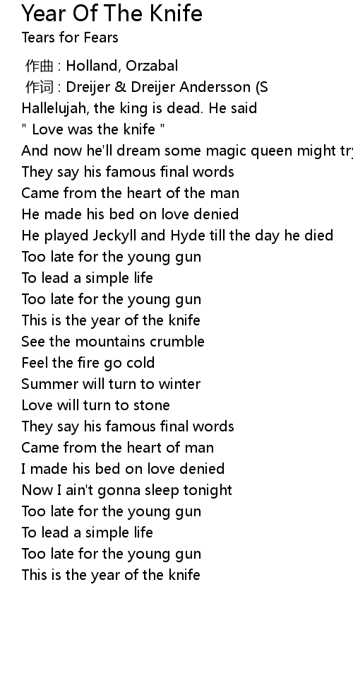 | [00:00.00] | 作曲 : Holland, Orzabal |