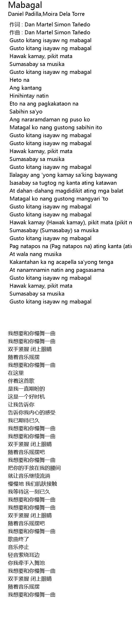 | [00:00.000] | 作词 : Dan Martel Simon Tañedo |