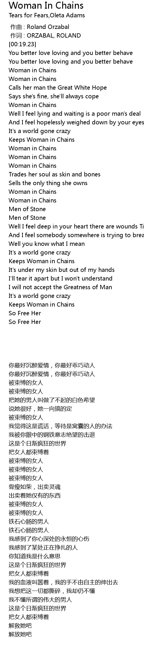 | [01:15.16] | Woman in Chains |