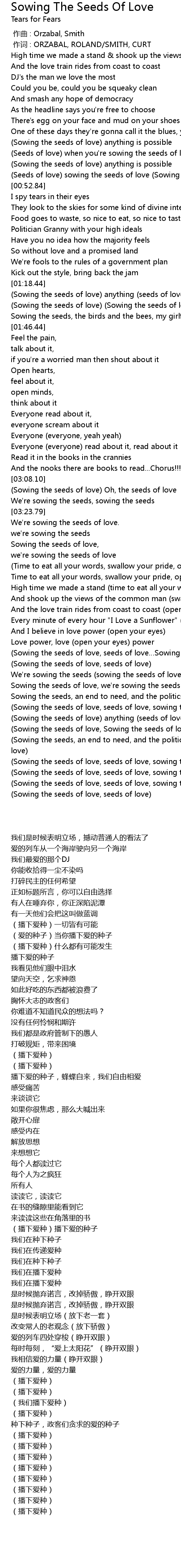 | [00:48.47] | Seeds of love sowing the seeds of love Sowing the seeds |
