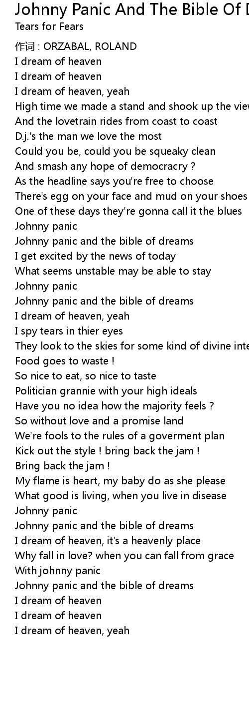 | Song | Johnny Panic And The Bible Of Dreams - Fluke Remix |