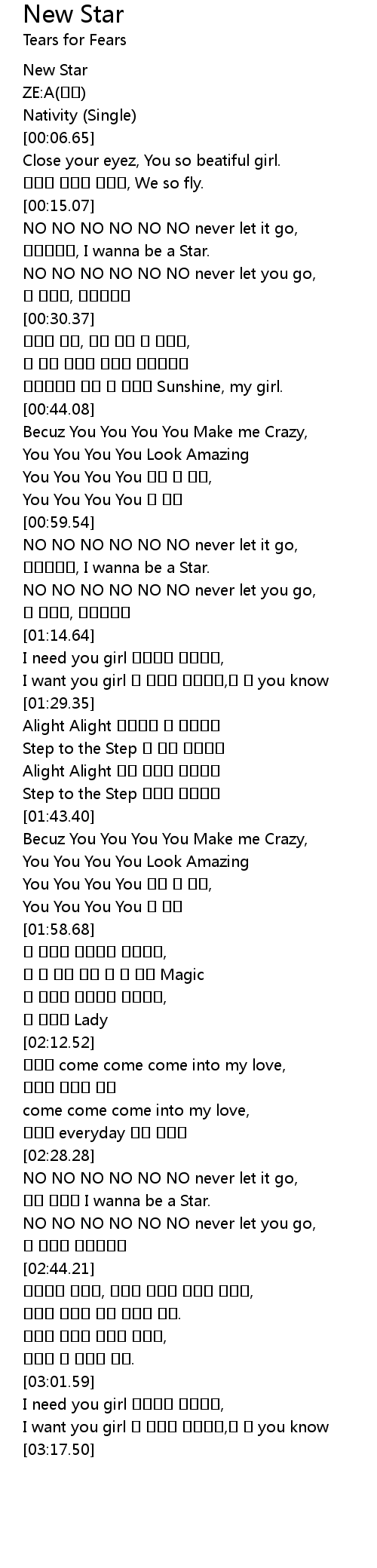 | [02:32.52] | 곁에 있어줘 I wanna be a Star. |