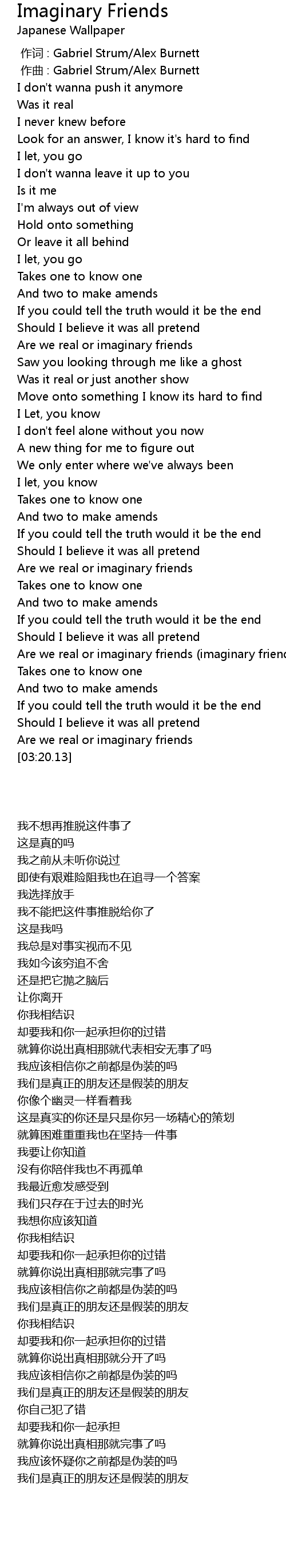 | [03:15.11] | Are we real or imaginary friends |