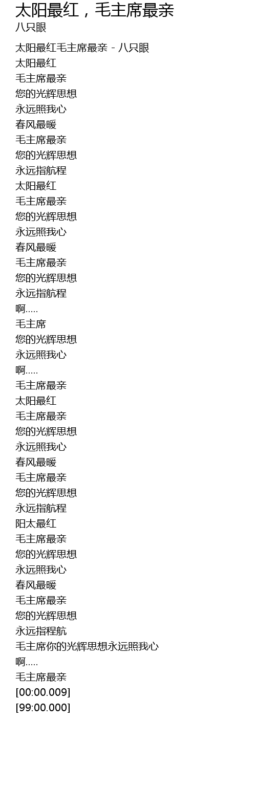 | [00:03.02] | 太阳最红毛主席最亲 - 八只眼 |